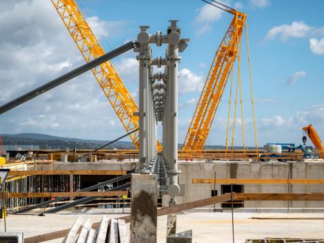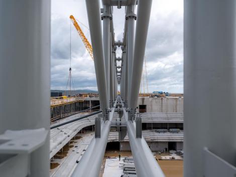 Már a külső szemlélők számára is könnyen felismerhető, hogy mit építünk Székesfehérváron! A KÉSZ Csoport további tagvállalataival és partnereivel javában dolgozunk az Alba Arénán. A munkálatokról a Magyar Építők is beszámolt, ahol néhány érdekes részletet is megosztottunk a nagy szabású projektről! Ha érdekel a teljes cikk, akkor kattints a lenti gombra!